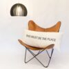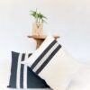Almohadón de lienzo 100% algodón preencogido color crudo y estampa en negro. Funda lavable y desmontable con cierre inferior. Relleno de vellón siliconado EXTRA mullido.