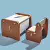 Es la mesita mas funcional de todas y vieen con rollo de papel construida en goma eva de alta densidad y multilaminado de madera. Dimensiones : 40 x 50 x36 cm